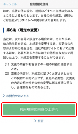 当社サイトにログインし、「利用規約に同意の上許可」をタップしてください。スマート認証NEOを登録されていないかたは「SMS認証」をご選択ください。