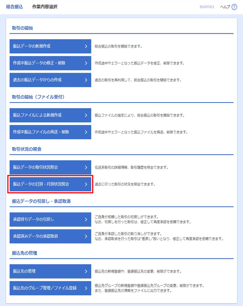 [振込データの日別・月別状況照会]ボタンをクリックしてください。